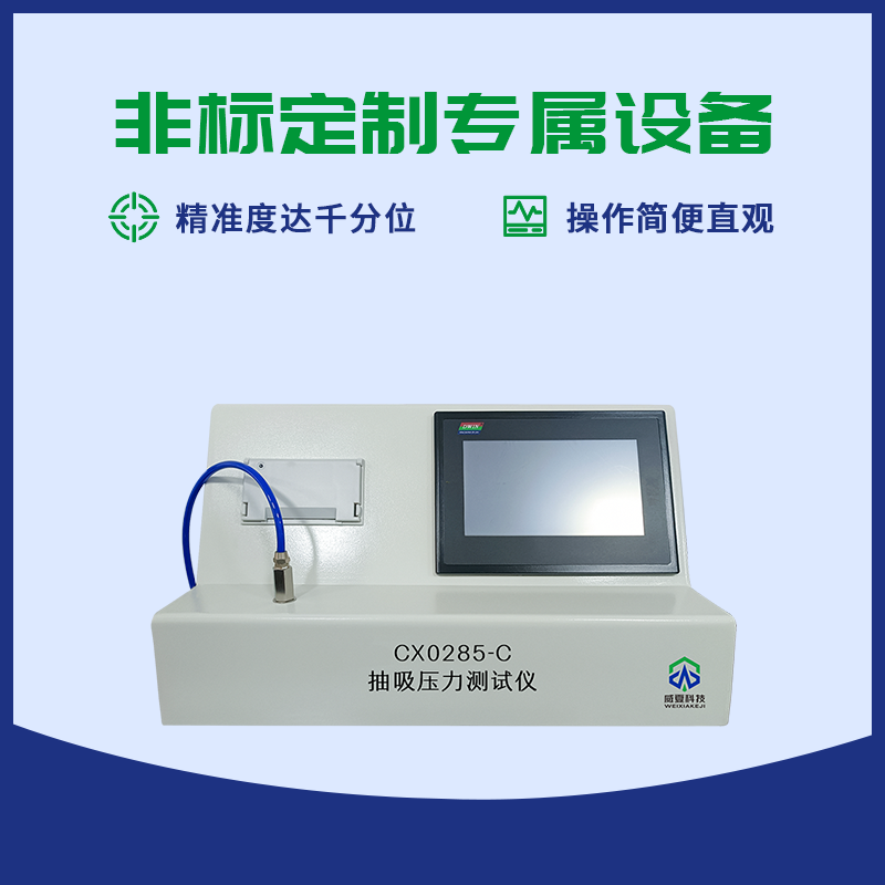 CX0285-C 壓力抽吸測(cè)試儀 主要用于測(cè)定醫(yī)療導(dǎo)管抽吸壓力的物理特性,是鑒定醫(yī)療導(dǎo)管抽吸壓力物理性能的重要手段之一。適用于輸液器、輸血器、輸液針、麻醉包過(guò)濾器、管路、導(dǎo)管、快速接頭等。
