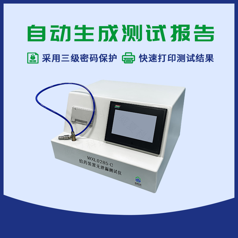 WXL0285-C 給藥裝置無泄漏測(cè)試儀是國家檢驗(yàn)生產(chǎn)廠家產(chǎn)品能力的智能檢測(cè)設(shè)備,主要用于測(cè)定給藥裝置的物理特性,是鑒定給藥裝置無泄漏物理性能的重要途徑之一。