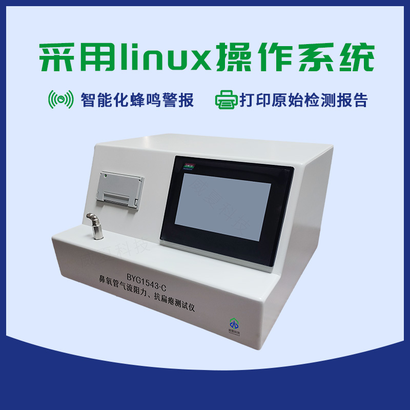 BYG1543-C鼻氧管氣流阻力、抗扁癟測試儀一款用于測試鼻氧管氣流阻力、抗扁癟性、通暢性等多項(xiàng)性能的設(shè)備,符合YY/T 1543-2017《鼻氧管》的測試要求。