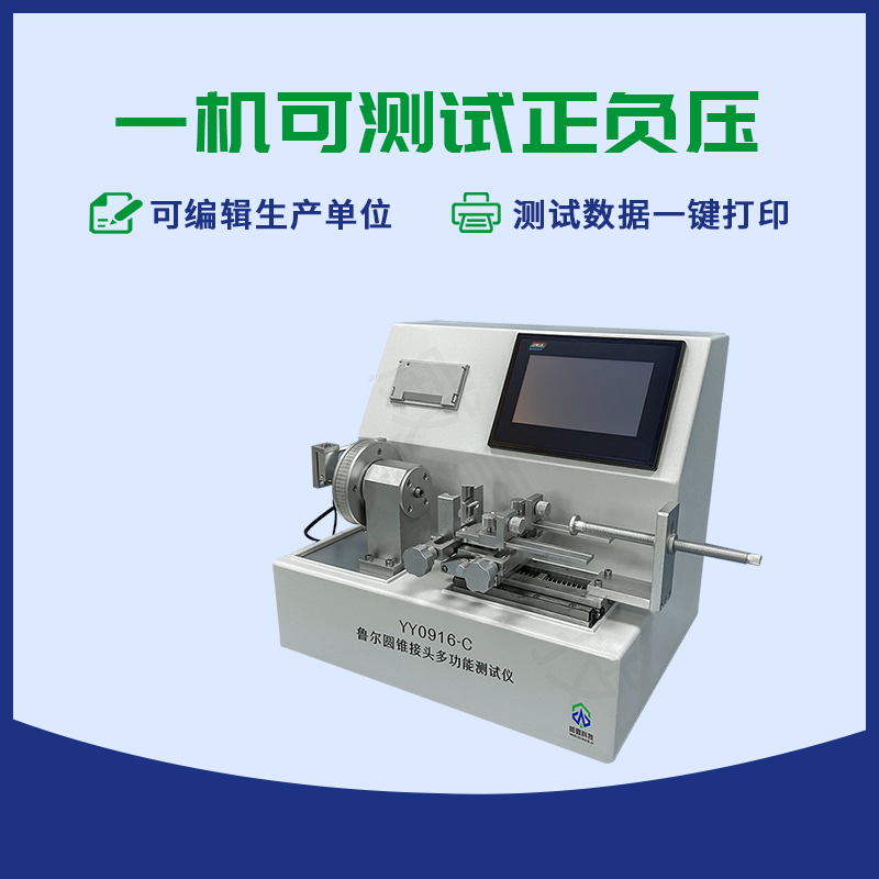 YY0916-C魯爾圓錐接頭綜合測試儀主要用于測定魯爾接頭漏液、漏氣、分離力、旋開扭矩、易裝配性、抗滑絲性、抗過載性、應(yīng)力開裂、壓力衰減泄漏、正壓液體泄漏、負(fù)壓空氣泄漏等各項(xiàng)性能。