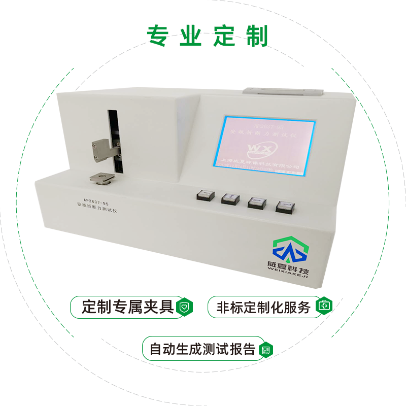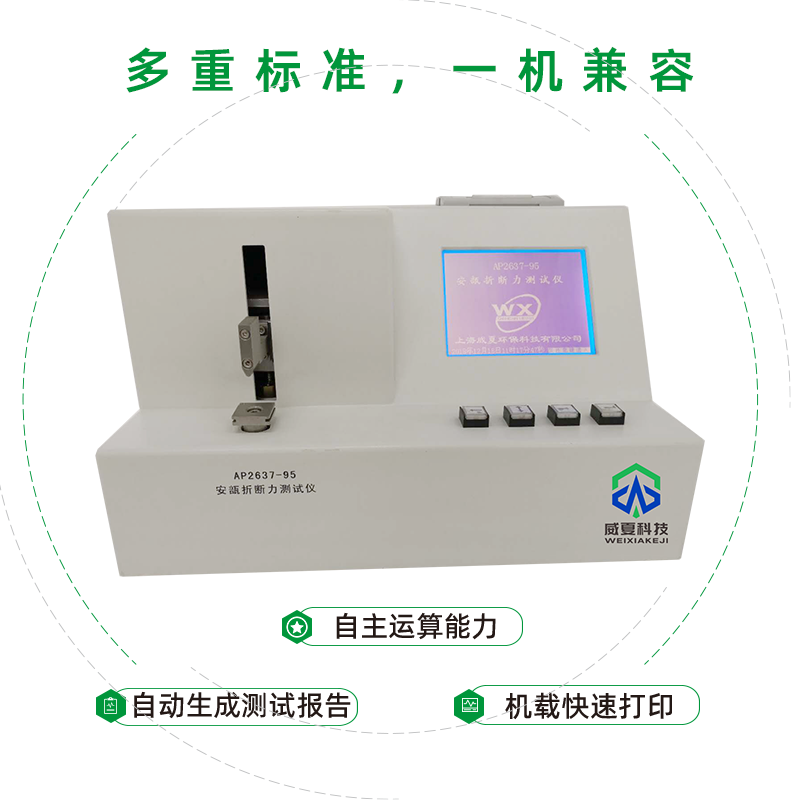 威夏科技 AP2637-95 安瓿折斷力測試儀是國家檢驗(yàn)生產(chǎn)廠家產(chǎn)品性能的高效檢測設(shè)備。設(shè)備應(yīng)用:安瓿折斷力測試儀主要用于測定安瓿瓶折斷力的物理特性,是鑒定安瓿瓶的重要手段之一。菜單選擇規(guī)格、標(biāo)準(zhǔn)支架、上行、下行、時(shí)間、標(biāo)定、測試次數(shù)、實(shí)時(shí)顯示折斷力及折斷力曲線,并可有機(jī)載打印機(jī)打印。