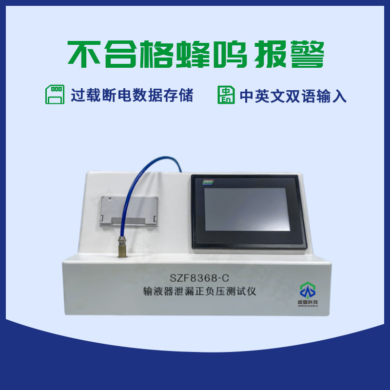 威夏科技 SZF8368-C 輸液器泄漏正負(fù)壓測試儀是檢驗(yàn)生產(chǎn)廠家產(chǎn)品性能的檢測設(shè)備。SZF8368-C 輸液器漏泄正負(fù)壓測試儀適用于輸液器、輸血器、輸液針、麻醉包過濾器、管路、導(dǎo)管、快速接頭等測試,主要用于測定醫(yī)用輸液器的物理特性,是鑒定輸液器正負(fù)壓物理性能的重要手段之一。測試操控范圍包括:產(chǎn)品規(guī)格、測試壓力值設(shè)定、保持時間設(shè)定,打印設(shè)定、測試、加壓、減壓、時間、標(biāo)定,檢定等等功能設(shè)定。