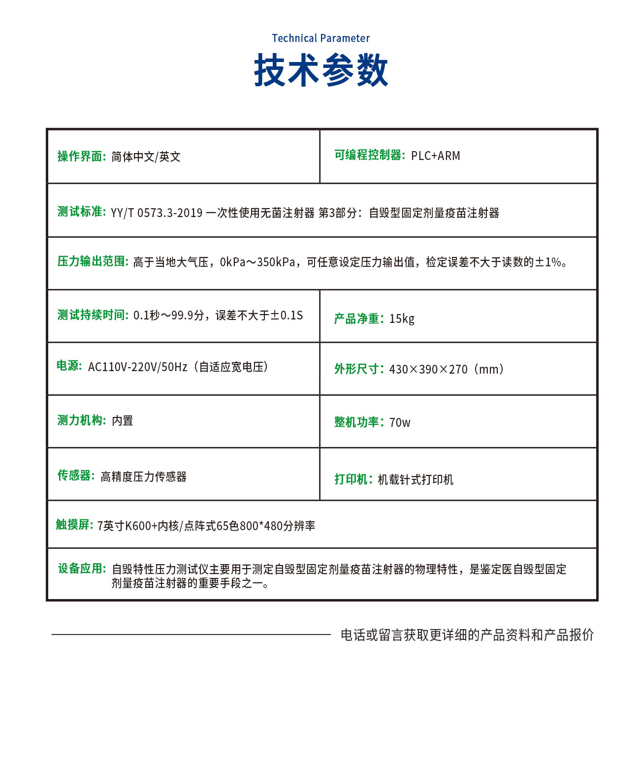 威夏科技YL0573-C 自毀特性壓力主要用于測定自毀型固定劑量疫苗注射器的物理特性,是鑒定醫(yī)用自毀型固定劑量疫苗注射器的重要手段之一。