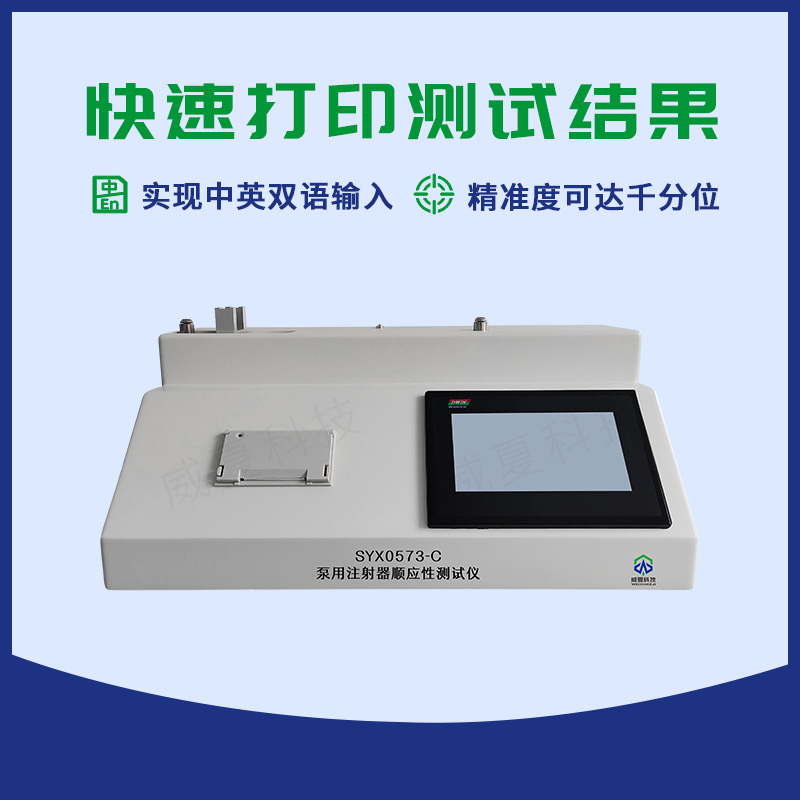 SYX0573-C注射器順應(yīng)性測試儀由可編程控制器,觸摸屏,力值傳感器,傳動裝置,機載打印機等組成,提供中英文菜單顯示,具備人機對話設(shè)定各項參數(shù)自動運行測試模式。另增設(shè)生產(chǎn)單位,生產(chǎn)批次機打輸入,使測試結(jié)果更加規(guī)范化標準化。